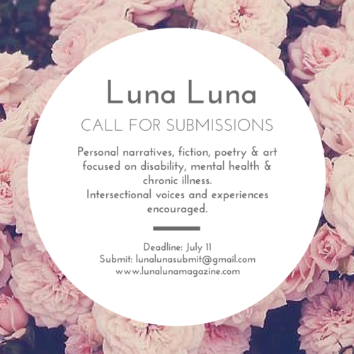 Regular submissions are always open and currently they have calls open for two upcoming special issues: the first is focused on disability, mental health, and chronic illness; the second is focused on work inspired by vintage beauty and lifestyle.
