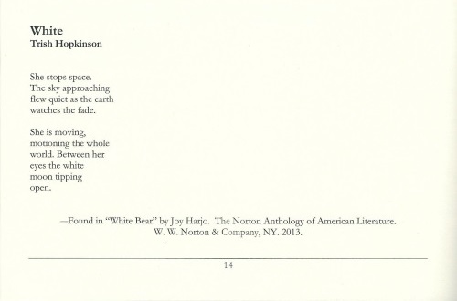I’m honored to be featured in Les Femmes Folles (LFF) for their 2017 series of women artists. They do a custom interview and include artwork in each feature. My feature includes two found poems previously published in Wild Horses, Women on Fire by ELJ Editions: “Salvage great love at all cost” and “White.” The features are also compiled and printed in a collection annually.