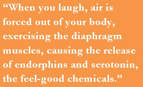 In the last twenty years, a lot of research has been done highlighting the health benefits of hilarity. When you laugh, air is forced out of your body, exercising the diaphragm muscles, causing the release of endorphins and serotonin, the feel-good chemicals.