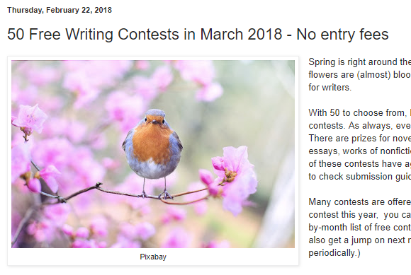 Click here for the complete list of 50 Free Writing Contests in March 2018 – No entry fees.