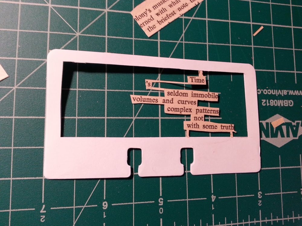 Using a blade or X-Acto knife, the writer literally cuts the words out of the paper.