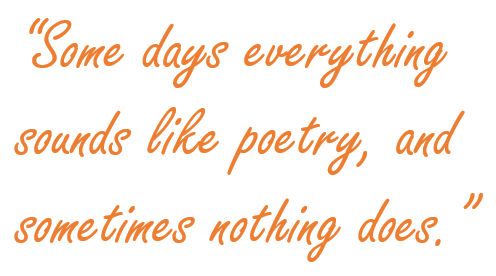 I depend on my immediate world to supply grist for my work. Some days everything sounds like poetry, and sometimes nothing does. While I'm often entranced by the busy, multi-chromatic noises of schedules and appointment calendars, I often need to subvert those notes before I can hear the whisper that signifies deep, fresh language.