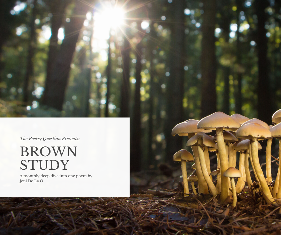 DE LA O: BROWN STUDY is a monthly deep-dive into a single poem arranged in three parts: an interactive, annotated version of the poem, an analysis of the text, and a Q & A with the author.