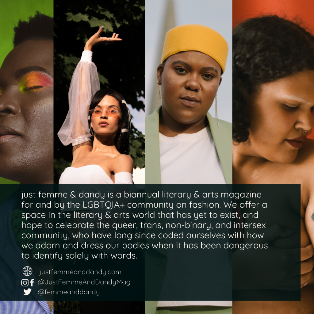 TSAI: I want to first say that we are not solely a lit mag. So our reader and viewer audience is, first and foremost, for the LGBTQIA+ community, across age, background, and other identities. But, I do feel that just femme & dandy is a magazine that anyone can enjoy.