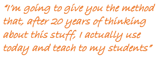 So, it seems as though every method I’ve mentioned has significant flaws. And certainly, that has been my experience of all of them. So, finally, I’m going to give you the method that, after 20 years of thinking about this stuff, I actually use today and teach to my students: