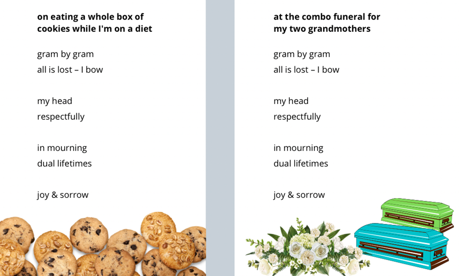 In the revision process, it’s super helpful to go through a checklist of sorts to examine what you’ve consciously or unconsciously chosen to do in your poem, and whether those choices align with your intentions for the poem.
