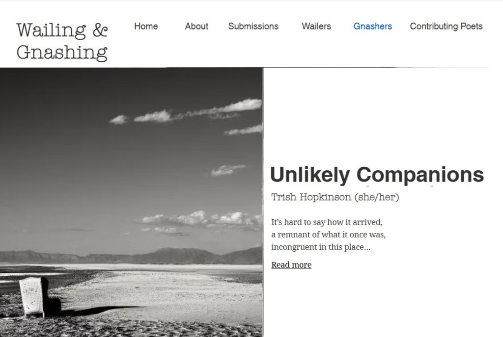 Many thanks to Wailing & Gnashing for publishing two of my poems: “Footnote to a Footnote” from my collection Footnote (Lithic Press, 2017) of response poems; and “Unlikely Companion” which won the Utah Arts Festival IronPen competition last year. There are so many incredible things about this new journal, specifically, they are incredible to work with, quick to respond, accept reprints, and are just the kindest folks. I encourage all my followers to consider sending them work!
