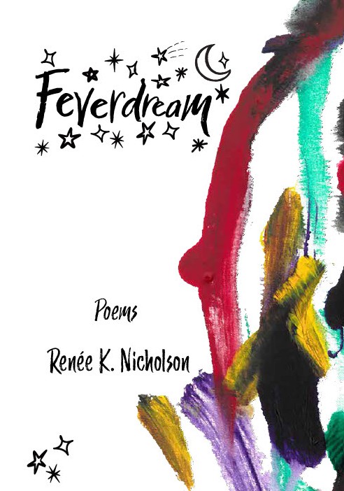 - Design as a Third Collaborator: Consider how the poem sits on the page relative to the art. Does the art lead into the poem, or does it act as a coda, or both? In Feverdream, the poems follow a sequence of sections–Home, Body, Loss, Seasons, Glow–and the art between sections both helps pull those sections together thematically and visually, and also creates space and reflection between sections.