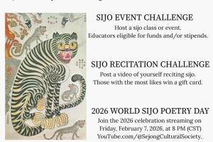The Sejong Cultural Society is a 501(c)(3) not-for-profit organization founded in Chicago, IL in 2004. They are currently open for no fee entries for their Sijo Event Challenge and Sijo Recitation Challenge ($100 awards), Sijo Writing Competition (prizes $50 – $1000) as well as for Sijo classes & […]
