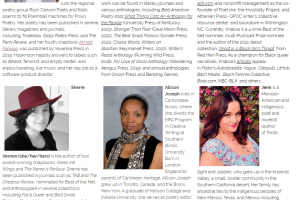 I’m pleased to announce I’ll be teaching a poetry workshop for the International Women’s Writing Guild on Saturday, December 13 from 1 – 3:30pm ET. This virtual poetry workshop invites participants to explore the intersection of sensory awareness and personal identity as creative catalysts. Through guided readings, reflective […]