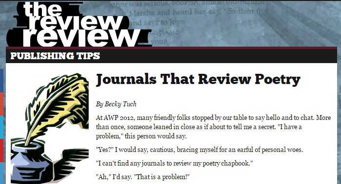 Great article by Becky Tuch founding editor of The Review Review, which is a valuable resource for detailed reviews of many others publications, as well as access to calls for submissions and other writer resources. If you like this post, please share with your writerly friends and/or follow my blog or like my […]