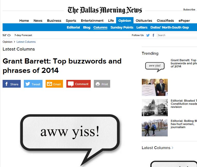 Word nerds everywhere are going to love this article! It was great to see “blackout poetry” mentioned and I definitely got a kick out of “lumbersexual” and “ammosexual.” Big thanks to Grant Barrett of The Dallas Morning News for having such a great ear and compiling this list: […]