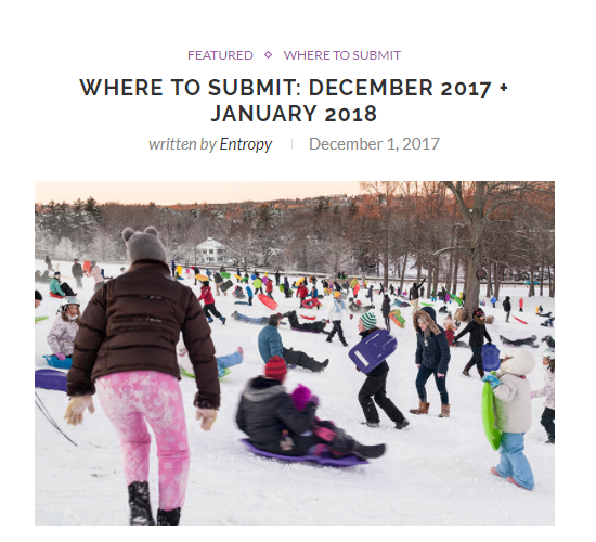 Entropy is a “website featuring literary & non-literary content. A website that seeks to engage with the literary community, that becomes its own community, and creates a space for literary & non-literary ideas.” They recently posted an article on where to submit December through February. Click here to read the […]