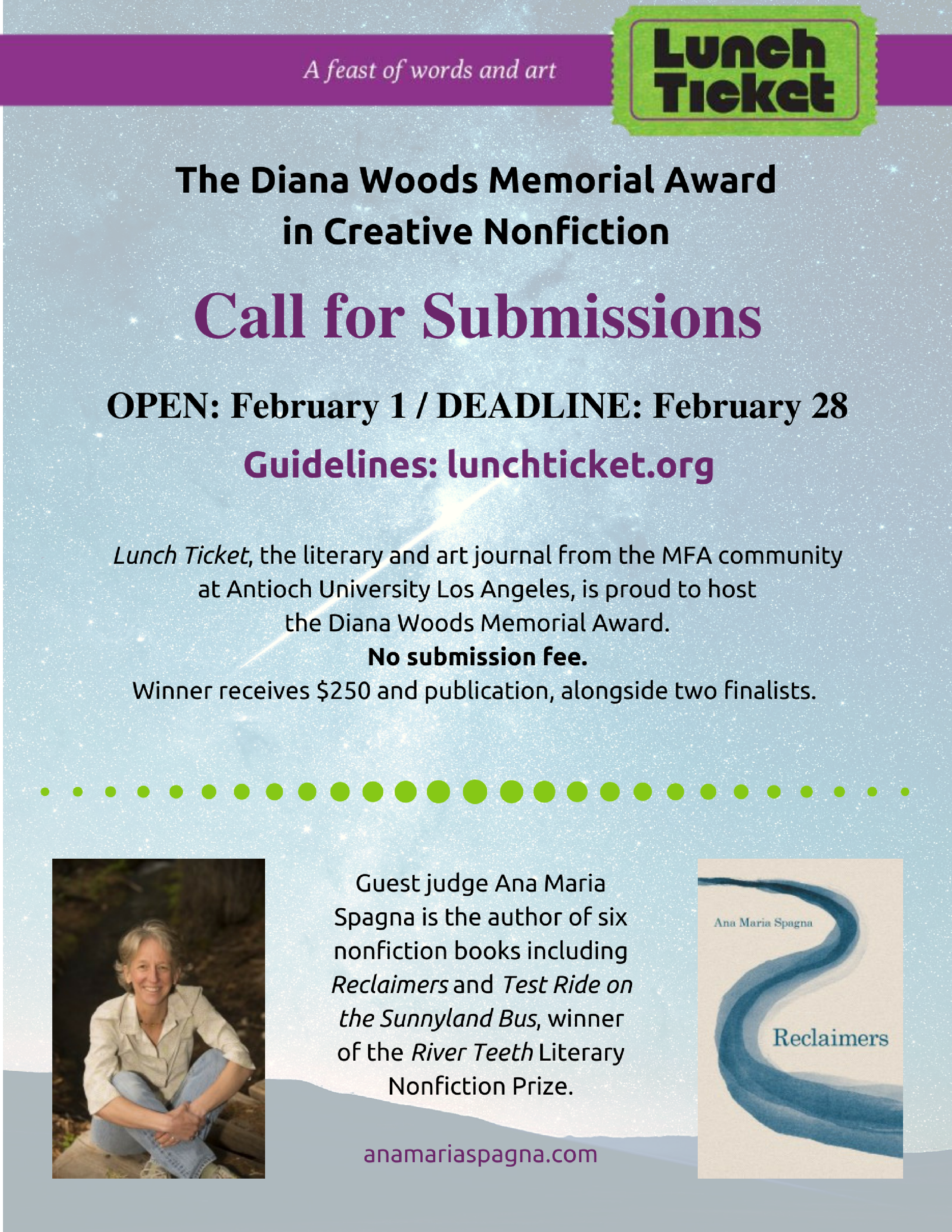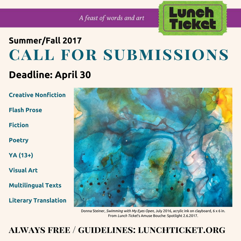 Those of you who have been following my submission call posts for a while know how much I appreciate the staff at Lunch Ticket. They are kind, responsive, and organized. They are currently open for all writing genres and visual art, including specific calls for young adults (13+) and […]