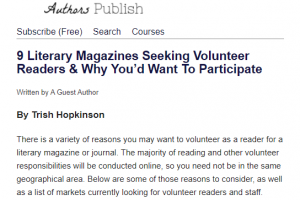 Thank you to Authors Publish for publishing my article on their resourceful site! If you’re wondering how to become more involved in the literary community and why you’d want to, click the link below for five reasons to volunteer for a publication, including: gaining experience, meeting other writers, […]