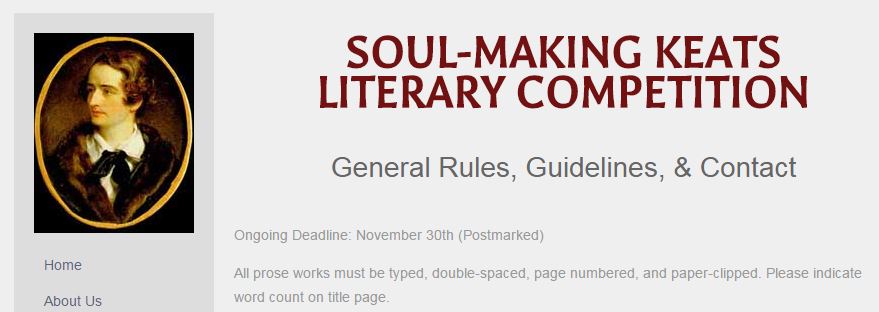 $5 Poetry/Prose Contest – Soul Making Keats Literary Competition, DEADLINE: Nov. 30, 2015